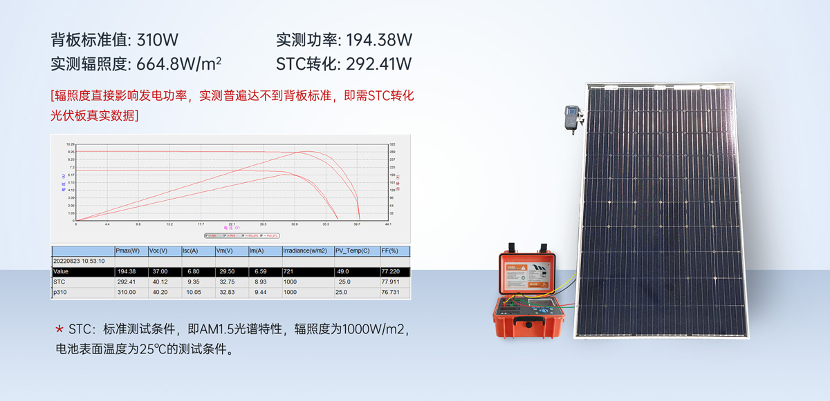 (2)轉換到STC下最功率準確性治標是在穩定輻照度≧700W/m2,光譜滿AM1.5條件下測的,在實驗室